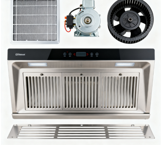 1)Synergistic Accessories for Strong Performance: The filter screen intercepts large-particle oil fume, the motor provides powerful power, and the centrifugal fan wheel rotates at high speed to form negative pressure for efficient fume exhaust. Each accessory performs its own function and works in coordination to ensure the oil fume absorption rate and exhaust efficiency.